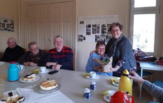 Ein Geburtstagsständchen für das „Geburtstagskind“ der letzten Wochen wurde gesungen und schließlich ließen sich alle Anwesenden bei einer guten Tasse Kaffee den selbst gebackenen Kuchen schmecken. Dabei wurde viel miteinander erzählt. Fotos aus früheren Jahren machten die Runde und wurden nach dem ersten Wiedererkennen oft mit staunenden Worten und einem Schmunzeln kommentiert.