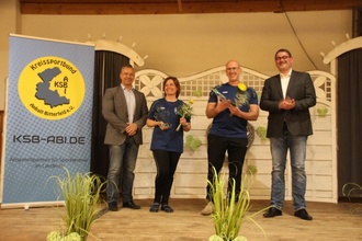 Schon allein die Tatsache, dass wir das Rahmenprogramm der Sportlerehrung des Landkreises Anhalt-Bitterfeld gestalten durften, hat uns geehrt. Und natürlich haben die Turnerinnen und Turner der SG Drosa wieder ihr Bestes gegeben und ihr Können gezeigt. Doch nach der letzten Darbietung war die Aufregung plötzlich groß! Ist da auf der Bühne nicht die Rede von den Trainern? Keiner hat damit gerechnet. Das Trainer-Team Bianca Köbernick und Kai Bandlow wurde für besondere Leistungen im Jahr 2024 ausgezeichnet. Überreicht wurde der Preis vom Landrat Andy Grabner und vom Bürgermeister des Osternienburger Landes, Torsten Lorenz.