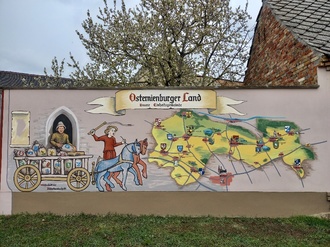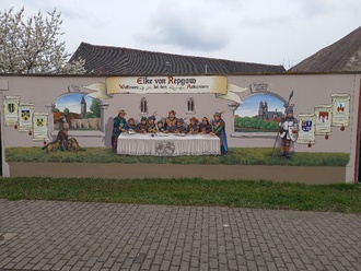 Im 3. Bild wird unsere Einheitsgemeinde Osternienburger Land vorgestellt. Die Darstellung hat das Ziel, die einzelnen Orte auf die Geschichte, die Sehenswürdigkeiten und vorhandenen touristischen Angebote hinzuweisen. Ein Pferdewagen aus der Wolfenbütteler Bilderhandschrift (um 1370) soll seine Fracht von beladenen Wappensäcken an den jeweiligen Bestimmungsort bringen. Eine tolle und interessante Gebietskarte weist den Touristen den Weg.