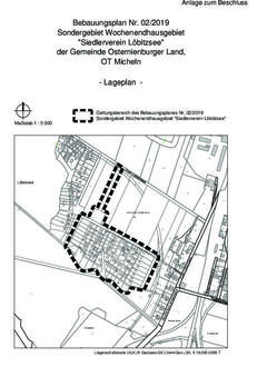 Mit der Bekanntmachung tritt der Bebauungsplan Nr. 02/2019 Sondergebiet Wochenendhausgebiet „Siedlerverein Löbitzsee“ der Gemeinde Osternienburger Land, Ortsteil Micheln am 05.08.2023 in Kraft.