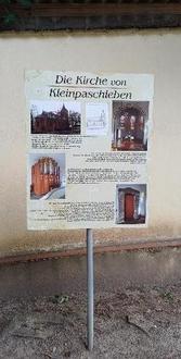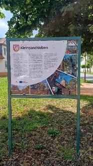 In Kleinpaschleben befinden sich 7 Tafeln, die viele konkrete Hinweise zur Geschichte des Ortes geben. Eine weitere befindet sich im Ortsteil Mölz. An Hand dieser Tafeln kann man Abtauchen in 846 Jahre Ortsgeschichte. 2029 begeht der Ort sein 850-jähriges Bestehen, da lässt sich einiges berichten. Die Tafeln wurden finanziert durch Spendengelder und Mittel der Heimatpflege.
