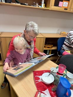 Dann war es endlich so weit. Bei Tee, Saft, Kaffee und duftenden Plätzchen verbrachten unsere Omas und Opas gemeinsam mit uns einen schönen besinnlichen Vormittag mit uns.