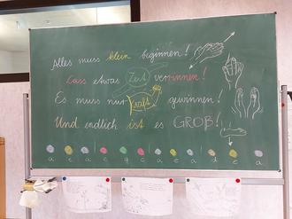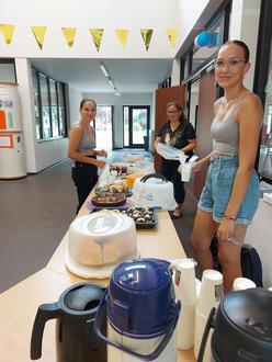 33 Schulanfänger mit Eltern, Geschwistern und sogar Großeltern nahmen unsere Einladung an. Am Eingang begrüßte die Schulleiterin alle Gäste und übergab den Schulanfängern einen Laufzettel. Im gesamten Schulhaus waren 10 Stationen zum Schnuppern vorbereitet. Da hatten die Mädchen und Jungen viel zu tun und waren eifrig bei der Sache. Zur Stärkung gab es für alle noch Kaffee und Kuchen sowie Erfrischungsgetränke. Die Eltern der Klassen 4a und 4b hatten gleich einen Kuchenbasar organisiert. Unterstützt wurden sie dabei von Maya, Lilli und Leny-Phil, ehemaligen Schülern unserer Grundschule. SUPER!