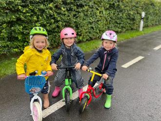 Nach gemeinsamer Planung brachten alle Kinder ihre Lauf- bzw. Fahrräder mit in den Kindergarten.