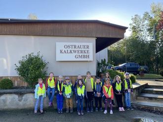 Mit dem Zug ging es früh nach Ostrau und von dort aus sind wir zum Kalkwerk gelaufen. Freundlich wurden wir von Floki, einem kleinen Münsterländer begrüßt. Herr Dürasch hat uns über das Gelände des Kalkwerkes geführt und uns viel interessantes Wissen vermittelt. Zum Abschluss haben wir uns noch die Werkstatt des Kalkwerkes angeschaut und sind danach wieder mit dem Zug zurück nach Zschaitz gefahren.