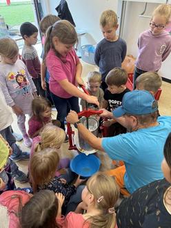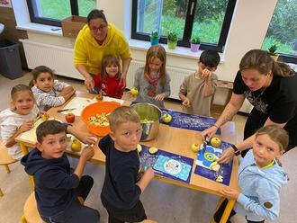 Die Kinder lernten, wie Äpfel wachsen und was man alles Leckeres daraus machen kann. Es wurde Apfelsaft gepresst, Apfelwaffeln gebacken und verschiedene Apfelsorten probiert. Außerdem kochten die Kinder Apfelmus, das natürlich auch gemeinsam verkostet wurde - lecker!
