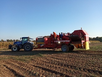 Am 30. September 2025 gingen die Klassen 3a und 3b in die Agrar AG Ostrau. Frau Ruhnau, Frau Meinhold und Herr Zschockelt begrüßten uns. 42 Kinder wurden in 3 Gruppen aufgeteilt. Herr Zschockelt fuhr mit uns zum Kartoffelfeld. Dort beobachteten wir einen Kartoffelroder bei der Ernte. Wir durften sogar selber mitfahren. Bei Frau Meinhold schauten wir uns auf Bildern Pflanzen und Maschinen genauer an. Dann durften wir noch Getreide und Gemüse verkosten. Mit Frau Ruhnau verfolgten wir den Weg der Kartoffel von der Ankunft im Betrieb bis die Kartoffel in den Kartoffelsack verpackt wurde. Dabei sahen wir, wie die Kartoffeln auf dem Laufband wanderten. Zu Schluss aßen wir leckere Salzkartoffeln mit Quark. Das war toll!