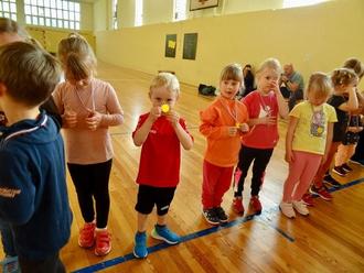 Nach einer ausreichenden Erwärmung erhielten die Kinder Stempelkarten. In den Disziplinen Koordination, Ausdauer, Kraft, Ernährung, Ski fahren, Hindernisparcour, Sumo-Ringen, Yoga, Geschicklichkeit und Mobilität sammelten die Kinder auf ihren Stempelkarten Stempel für jede absolvierte Station. Bevor es zur Siegerehrung kam, spielten wir als Abschlussspiel „Ball unter der Leine“. Zum Abschluss erhielten alle Kinder eine Goldmedaille zur erfolgreichen Teilnahme am Sportfest.