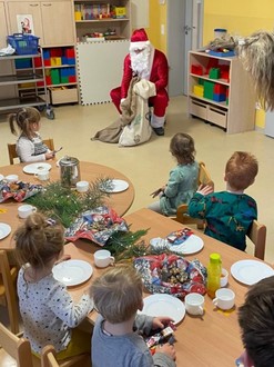 Am Nachmittag zur Vesperzeit besuchte uns der Weihnachtsmann dann auch persönlich. Mit einem schönen Lied bedankten sich die Kinder für die tollen Geschenke und durften zusätzlich einmal tief in seinen Sack greifen. Jedes Kind bekam von ihm noch eine kleine Aufmerksamkeit, welche sie hocherfreut mit nach Hause nehmen durften.