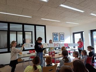 Im Anschluss stellten Kinder der vierten Klasse ihre selbstgestalteten Leserollen vor, die im Rahmen eines Unterrichtsprojektes des Faches Deutsch in den letzten Wochen entstanden waren.