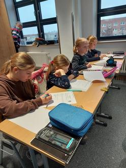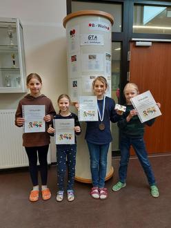 Aus den Klassenstufen 3 und 4 nahmen die zwei besten Rechner teil. Das waren Jule Hopf und Betty Buberek aus der Klasse 3 sowie Emma Wagner und Yuma Schumacher aus der Klassenstufe 4.
