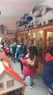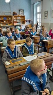 Genau zum Thema „Schule und Leben früher“ passend, durften sie heute im Heimatmuseum Schrebitz einen Rundgang vorbei an alten Geräten, noch älteren Einrichtungsgenständen (was ist ein Toilettenstuhl), einen alten Arztstuhl (es gab sogar mutige Jungen, die sich darauf gesetzt haben) bis hin zu Ausstellungsstücken der Feuerwehr aus vielen Jahrzehnten absolvieren. Lachend bestaunte man altes Spielzeug und ehrfürchtig betrachteten die Kinder glänzendes Porzellan. Ein ungläubiges Kopfschütteln war oft das Einzige, als ihnen erklärt wurde, wie man damals schlief. Aber wie so oft, kam das Beste zum Schluss - DIE SCHULSTUNDE! Schuluniform, stillsitzen, nicht schwatzen und auf Schiefertafeln schreiben wird wohl jedem der Kinder in langer Erinnerung bleiben. Zum Schluss war man sich wieder einig - uns geht es heute doch gar nicht so schlecht!
