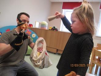 Kurz darauf bekamen wir Besuch vom Entsorgungsdienst Kreis Mittelsachsen. Gemeinsam spielten wir ein spannendes Müllspiel, bei dem die Kinder lernen konnten, welcher Abfall in welche Tonne gehört.