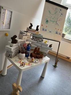 Schon in den Tagen zuvor war die Aufregung in der Marienkäfer- und Schneckengruppe sehr groß – gemeinsam wurde aus leeren Taschentuchboxen Osterkörbchen gebastelt, Lieder gesungen und Geschichten rund um den Osterhasen gehört. Die Kinder hatten große Freude daran, ihr selbstgestaltetes Osterkörbchen zu bemalen und zu bekleben.
