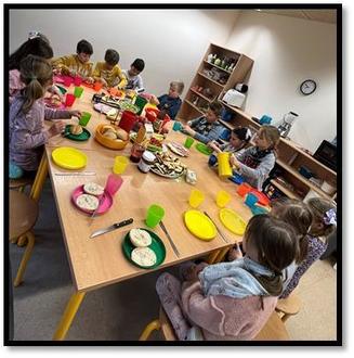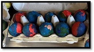 Aber nicht nur sportlich ging es im Hort zu. Es wurde auch bunt. Zur Vorbereitung auf das gemeinsame Osterfrühstück wurden Eier gefärbt und Blätterteighasen gebacken.