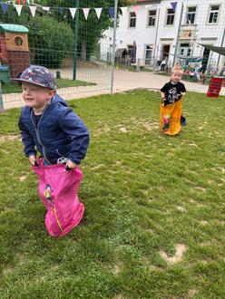 Doch mit dem Feiern ist es noch nicht vorbei, denn der Kindertag folgte sogleich. Ein Tag, der ganz im Zeichen der Kinder stand. Auch diesmal hatten die Erzieher ein buntes Programm vorbereitet, welches die Kinder auf Trab hielt und ihnen viel Freude bereitete. Der Tag begann mit einem gemeinsamen Frühstück. Danach folgten eine Reihe von Sportspielen, die die Kinder auf ihre Geschicklichkeit und ihre Ausdauer testeten. Beim Dosenschießen mussten die Kinder ihre Zielgenauigkeit unter Beweis stellen, während das Sackhüpfen ihre Ausdauer und Koordination forderte. Das Eierlaufen war ein Highlight, bei dem die Kinder ihre Balance und Geschicklichkeit zeigen konnten. Das Überqueren der Stapelsteine und Hindernisse machte auch den Kleinsten der Kita großen Spaß.