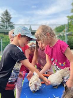 Die Verabschiedung der Schulanfänger wurde mit den Eltern und Erziehern am 05.06.2025 nachmittags gefeiert. Mit Schlafsack und Strandmuschel im Gepäck wurde zu Beginn das Nachtlager im Schmetterlingszimmer errichtet. Die Zeit bis zum Abendbrot wurde mit einer Überraschung versüßt – Peggy Fiedler brachte ihr kleines Pony Greta, Hühner und Häschen mit. Die Kinder waren begeistert! Nachdem alle ihre Bäuche mit Pizza und anderen Leckereien gefüllt hatten, sahen die Eltern ein kleines Programm von den Kindern. Der Höhepunkt des Abends war die Suche nach den Zuckertüten. Die Schulanfänger mussten Aufgaben lösen, um den Weg zu finden. Auch die Erzieher bekamen ein sehr schönes, bequemes Erinnerungsstück in Form einer neuen Gartenbank für die jahrelange Betreuung. Nachdem die Schulanfänger „rausgeschmissen“ wurden, verabschiedeten sich die Kinder von den Eltern und zogen sich in ihr Nachtlager zurück. Am Morgen gab es ein gemeinsames Frühstück mit den restlichen Kindern der Gruppe. Danke an alle Eltern, die den Tag für die Schulanfänger unvergesslich gemacht haben.
