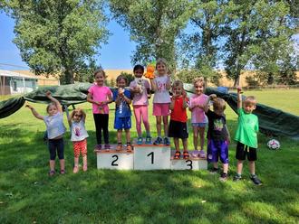 Zum Abschluss der Ferien veranstalteten wir ein Sportfest. Es gab verschiedene Stationen zu bewältigen zum Beispiel Gummistiefel – Weitwurf und Dreierhopp. Zum Abschluss spielten die Gruppe der Tanzbären gegen die Gruppe der Wackelzähne noch ein kleines Fußballturnier. Auf dem Siegertreppchen wurden unzählige Preise und Medaillen verliehen. Wir bedanken uns bei Frau Ritschel und Herr Stolper, welche uns an diesem Tag tatkräftig unterstützt haben. Sechs abenteuerreiche Wochen neigen sich nun dem Ende zu und wir freuen uns alle schon auf die nächsten Ferien.