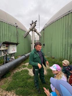 Anschließend ging es weiter zur Biogasanlage. Hier lernten wir, wie aus Gülle und anderen organischen Stoffen umweltfreundliche Energie gewonnen wird. Die Kinder hörten aufmerksam zu und stellten viele Fragen.