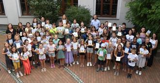 Mit diesen und weitere Fakten zum jüngsten Lesesommer hat Kinderbibliotheksleiterin Anke Gruve die Lesesommer-Abschlussveranstaltung eröffnet. Zu der sie gemeinsam mit ihrer Kollegin Gabriele Koch in die Stadtbibliothek eingeladen und dort ein Großteil der Teilnehmerinnen und Teilnehmer des Lesesommers begrüßt hat. Wie die Grund- und Sekundarschüler sowie Gymnasiasten auch von Oscherslebens Bürgermeister Benjamin Kanngießer willkommen geheißen wurden. „Ich bin immer wieder sehr erstaunt, wieviel Schülerinnen und Schüler Jahr für Jahr an dieser Leseaktion unserer Bibliothek teilnehmen. Es war jetzt die 15. Auflage und wir waren im Vergleich zu anderen Stadt- oder Kreisbibliotheken abermals weit vorn“, sagte der Bürgermeister. Der nicht nur den Mädchen und Jungen für deren Teilnahme dankte, sondern überdies den Bibliotheksmitarbeiterinnen für deren Einsatz bei dieser Leseaktion und insgesamt für deren Engagement bei der täglichen Arbeit mit jungen Leuten. Und junge Leute waren es auch, die bei dieser Abschlussveranstaltung für sehr festliche Stimmung sorgten. Für ihre Lieder und Musikstücke bekamen Ida Kretschmar, Maria Rode und Macea Albertini von der Kreismusikschule Kurt Masur Oschersleben gemeinsam mit Musikschullehrerin Nadine Duwe sehr viel Applaus. Den dann auch noch die 150 Mädchen und Jungen bekamen, die besonders erfolgreich am Lesesommer teilgenommen, also mindestens zwei Bücher gelesen und jeweils drei Fragen zum Inhalt richtig beantwortet haben. Damit waren die Anforderungen für die Lesesommer-Zertifikate erfüllt, die der Bürgermeister und die Bibliotheksmitarbeiterinnen mit dem Hinweis überreicht haben, sie den jeweiligen Deutschlehrern zu zeigen, die das nach Meinung von Anke Gruve, Gabriele Koch und Benjamin Kanngießer mit einer guten Deutschnote honorieren sollten. Womit aber noch nicht alles überreicht war. Denn zum einen sind unter allen Teilnehmern zudem 19 Bücher verlost worden, die von der Bodebuchhandlung Oschersleben und vom Land Sachsen-Anhalt zur Verfügung gestellt worden sind. Und zum anderen waren da noch Büchergutscheine für Lucy Schrader, Jella Grabandt und Lia Walter. Also für die drei Lesesommer-Teilnehmerinnen, die mit 30 Büchern (11.379 Seiten), 55 Büchern (10.800 Seiten) sowie 27 Büchern (6.752 Seiten) die Lesesommer-Statistik angeführt haben.