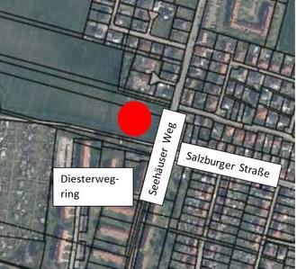 Der Geltungsbereich befindet sich auf der Freifläche westlich an der öffentlichen Straße „Seehäuser Straße“, direkt an das Wohngebiet „Diesterwegring“ anschließend. Der Geltungsbereich hat eine Größe von ca. 11.250 m².