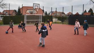 Oschersleben besitzt eine weitere neue Sport- und Spielanlage. Bürgermeister Benjamin Kanngießer hat Mitte Dezember das „Kleinspielfeld am Diesterwegring“ gemeinsam mit dem Fachbereichsleiter Bauen und Umwelt Matthias Wilcke und Tiefbau-Sachgebietsleiterin Annegret Stertz sowie im Beisein zahlreicher begeisterter Hortkinder für eine erste Nutzung freigegeben. Die Hortkinder haben sogleich einmal ausprobiert, wie sich auf der neuen Anlage Fußball spielen lässt. Nicht nur die Hortkinder freuen sich über die neue Sport- und Spielanlage, sondern mit ihnen auch die anwesenden Hortnerinnen Kathleen Sprenger und Annette Freund.