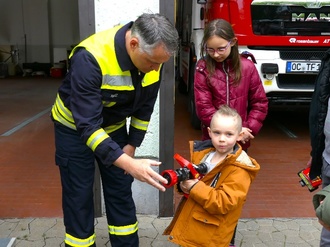 So kam am vergangenen Freitag der große Tag für Leon. Mit seiner Familie und Freunden besuchte er nun endlich die Feuerwehr. Gerätewart Falk Zönnchen und der stellvertretende Ortswehrleiter Matthias Hinz begrüßten den kleinen Besucher. Dann wurden die großen Löschfahrzeuge und die Drehleiter mit Blaulicht und Martinshorn auf den Hof der Feuerwache gefahren. Vor dem lauten Martinshorn hatte Leon schon etwas Respekt. Die Anspannung fiel aber schnell, als Matthias Hinz einige wichtige Geräte erklärte. Danach ging es an die große Drehleiter. Im Korb konnten Leon und seine Geschwister einmal Platz nehmen. Im Anschluss durfte Leon selber auf dem Fahrersitz eines großen Löschfahrzeuges sitzen und war mächtig stolz.