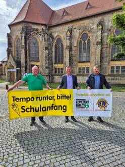 Die Banner tragen die Aufschrift „Tempo runter, bitte! Schulanfang“ und wurden von Herrn Glandien als Vorsitzender der Kreisverkehrswacht Oschersleben im Landkreis Börde e.V. und von Herrn Lindenblatt als Vizepräsident des Lions-Club Oschersleben an die Stadt Oschersleben (Bode) übergeben. Bürgermeister Benjamin Kanngießer sagt dazu: „Besonders in Schulnähe ist erhöhte Aufmerksamkeit gefragt, um Unfälle zu vermeiden und den Schulweg für Kinder so sicher wie möglich zu gestalten. Das bewusste und rücksichtsvolle Verhalten aller Verkehrsteilnehmer ist für eine sichere Umgebung für die Kinder von großer Bedeutung.“ Herr Glandien betont im Rahmen der Übergabe die gute Zusammenarbeit und die starken Netzwerke mit den Partnern aus der Region, welche auch in der Zukunft aufrechterhalten bleiben sollen. Die Stadt Oschersleben (Bode) bedankt sich bei der Kreisverkehrswacht Oschersleben im Landkreis Börde e.V. und dem Lions-Club Oschersleben für ihr Engagement und ihre Unterstützung, die Sicherheit unserer Schulkinder zu verbessern.