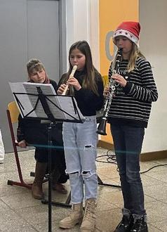 Fenya Rother und Nele Reimann (Kl. 5) spielen im Duo ihr Weihnachtslied