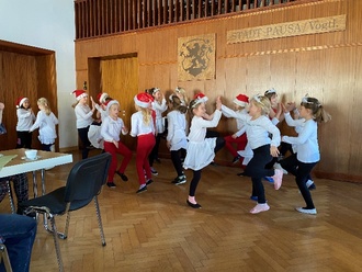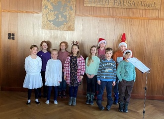 Eine Generalprobe für das Programm zum Schul-Weihnachtsmarkt hatten unsere Schülerinnen und Schüler am 05.12.2023, denn an diesem Tage fand ein Auftritt im Rathaussaal zur Seniorenweihnachtsfeier der Volkssolidarität statt.