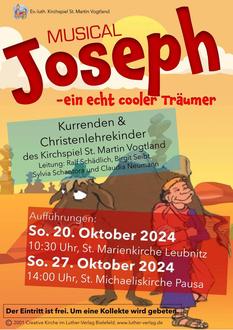Wer kennt sie nicht - die faszinierende Josephs-Geschichte über Träume, Leidenschaft, Verrat, Lüge und Vergebung? Musikalisch wird das spannende Kindermusical mit heißen Rhythmen, eingängigen Melodien und zeitgemäßen Texten erzählt.