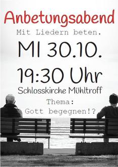 Diesen Gott wollen wir am 30. Oktober 2024 um 19:30 Uhr zum Vorabend des Reformationstages mit lauten und leisen Tönen feiern. Zu dem Anbetungsabend in der Mühltroffer Schlosskirche wollen wir dabei gemeinsam singen, aber es soll auch Zeit sein an verschiedenen interaktiven Gebetsstationen Gott zu begegnen, ihm sein Herz auszuschütten und ein offenes Ohr für sein Reden zu haben. Gott begegnen können wir überall, aber der Anbetungsabend kann eine gute Gelegenheit sein, sich wieder einmal bewusst dafür zu entscheiden und sich Zeit für Gott zu nehmen.