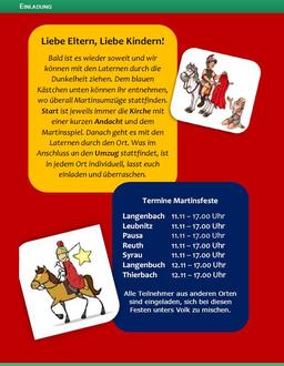 Wir laden herzlich zur Aufführung des Kindermusicals am 27. Oktober, um 14:00 Uhr in die St. Michaeliskirche Pausa ein. Aufgeführt von den Kurrenden & Christenlehrekinder des Kirchspiel St. Martin Vogtland unter der Leitung der Kantoren Birgit Seibt und Ralf Schädlich und den Gemeindepädagogen Sylvia Schantora und Claudia Neumann