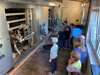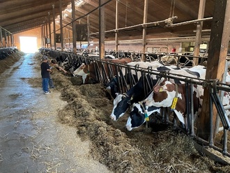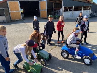 Am 26.08.2025 wanderten die dritten Klassen der Grundschule Pausa bei sonnigem Wetter zum Agrarbetrieb Floß. Dort empfing uns Frau Floß und führte uns durch den Kuhstall. Die 80 Kühe und 80 Kälber steckten neugierig ihre Köpfe aus dem Gitter. Mit Eifer gingen wir daran, die Tiere mit Heu, Schrot und Pellets zu füttern. Anschließend zeigte uns Frau Floß die drei Melkroboter. Es war sehr interessant zu beobachten, wie die Kühe ganz alleine zum Melken kamen und wieder zurück in den Stall gingen. Dann haben wir an einem Holztisch versucht, selber zu melken. Das war gar nicht so einfach. Frau Floß hat uns viel erklärt und alle unsere Fragen geduldig beantwortet. Nach unserem Rundgang hatten wir noch viel Spaß beim Spielen. Es war ein toller Wandertag und wir Kinder der dritten Klassen wollen auf diesem Wege noch einmal herzlichen Dank an Frau Floß und ihren Mitarbeiter sagen. Sie waren alle sehr nett.
