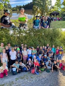 Am 26. August machten wir, die vierten Klassen der Grundschule Pausa, mit unseren Klassenlehrerinnen Frau Kaiser und Frau Weber sowie Frau Neudeck und Frau Löschner einen Wandertag an verschiedene Gewässer. Wir starteten an der Schule und sind weiter bis zum Butterberg gegangen. Am Freibad haben wir dann unser Frühstück gegessen. Danach sind wir an einer Wiese vorbei bis zum ersten See gelaufen, wo einige Kühe standen. Dort haben wir viele Libellen und Wasserpflanzen beobachtet. Anschließend ging es weiter zur Pausaer Weide, wo wir einen Arbeitsauftrag bearbeitet haben. Wir haben Wasserproben entnommen und konnten feststellen, dass im Teich kleine Mini-Tierchen und Pflanzenreste herumschwammen. Weiter ging es dann zu den Windrädern, an denen wir ein Klassenfoto machten. Über den Ritzmar sind wir bis zur Schule zurückgelaufen. In der Schule angekommen, haben wir noch eine kleine Hofpause mit leckerem Eis gemacht.