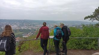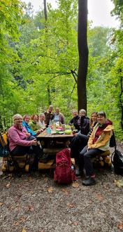 Unser Tagesausflug führte uns dieses Jahr am 27. September nach Jena. Bereits früh starteten wir mit der Deutschen Bahn und begannen gegen 10 Uhr mit Etappe 1 der Saalehorizontale. Nach einem nicht ganz unerheblichen Aufstieg führte der Weg entlang der Lobdeburg mit Blick auf das Universitätsklinikum Jena durch Wald und Flora. Zur Halbzeit legten wir eine gemütliche Rast mit selbst mitgebrachten Snacks im Grünen am Fürstenbrunnen ein. Die zweite Etappe führte uns über schmale Pfade entlang der Muschelkalkberge bis hin zur Kupferplatte. Nach einer kurzen Pause und dem Genießen des Panoramas stiegen wir hinab. Im Zentrum kehrten wir zu einer gemeinsamen Mahlzeit ein, bevor wir wieder mit dem Zug Richtung Heimat aufbrachen. Es war ein wundervoller Tag für alle Beteiligten, begleitet von guter Organisation und einer sorgfältigen Vorbereitung einzelner Teilnehmender. Für das kommende Jahr planen wir die Fortsetzung mit der zweiten Etappe und freuen uns schon jetzt darauf.