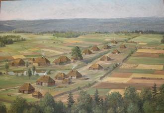 Rodung des Uhl, Rekonstruktion der Ursiedlung Zeulenrodas um 1320 von Friedrich Reimann