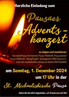 Auch in diesem Jahr findet wieder unser traditionelles Pausaer Adventskonzert in der St. Michaeliskirche statt.