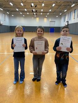 Auch in diesem Jahr fand an unserer Schule ein Vorlesewettbewerb statt. Aus den Klassen 2-4 traten besonders lesestarke Kinder an. Nach einer kurzen Einlesephase präsentierten sie der Jury, bestehend aus Lehrkräften sowie Schülerinnen und Schülern anderer Klassen, ihr Können. Bewertet wurden unter anderem die Lesetechnik, das Tempo und die Betonung. In der Klasse 2 überzeugte Milla Pietsch die Jury und belegte den 1. Platz. Oliver Thieme erreichte den 2. Platz, gefolgt von Anni Kuhl auf dem 3. Platz. In der Klasse 3 sicherte sich Anastasia Bräutigam den 1. Platz. Elena Reinhold folgte auf Platz 2 und Dorothea Stark erreichte Platz 3. In Klasse 4 las sich Frieda Höfer an die Spitze und gewann den Wettbewerb. Marie Popp belegte den 2. Platz, Elisabeth Neumann den 3. Platz. Herzlichen Glückwunsch an alle Teilnehmerinnen und Teilnehmer für ihre starken Leseleistungen!
