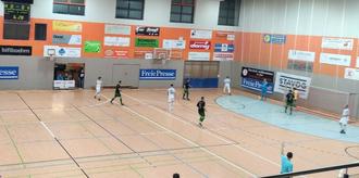Im Hallenpokal der Freien Presse hat uns die Losfee in der ersten Runde eine schwere Gruppe zugelost. So mussten unsere Männer in der Einheit-Arena in der Wieprechtstrße in Plauen gegen den VFC Plauen, VFB Auerbach 2, Post SV Plauen, SV Theuma und die SpVgg Grünbach-Falkenstein ran. Das erste Spiel war gleich der Kracher gegen den VFC Plauen. Trotz einer 1:4 Niederlage konstatierte der Trainer, dass da mehr drin war. Im zweiten Spiel tat man sich sichtlich schwer, sodass nur ein 1 : 1 gegen Post SV Plauen zu Buche stand. Im dritten Spiel dann endlich der erste Sieg. 5 : 2 hieß es gegen die SpVgg Grünbach-Falkenstein. Im vierten Spiel gegen den VfB Auerbach 2 konnte man lange mithalten. So stand bis knapp zur Hälfte noch 0 : 0 (siehe Bild).