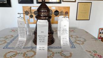 Als sichtbare Anerkennung der regelmäßigen Teilnahme wurden die Namen der Ausgezeichneten von der Druckerei Baumgärtel aus Plauen auf eine kleine Fahne gedruckt, welche an unserem „Ehrenturm“ eingesteckt wird. Dankeschön an die Druckerei Baumgärtel sowie Gerda Kuhles für das Einfassen der Fahne.