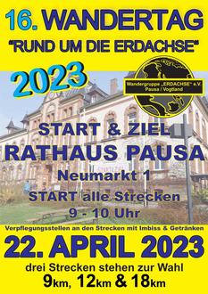 Die Wandergruppe „Erdachse“ e. V. Pausa/Vogtland lädt wieder herzlich zum traditionellen Wandertag „RUND UM DIE ERDACHSE“ ein.