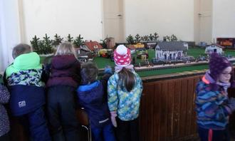 Am letzten Februar- und ersten Märzwochenende fand endlich wieder, nach der langen Pandemiezeit, unsere jährliche Ausstellung im Bürgerhaus Mühltroff statt. Traditionell haben wir auch dieses Jahr zwischen den beiden Wochenenden den Kindergarten zu Besuch gehabt. Am Mittwoch den 01.03.2023 kamen alle größeren Gruppen der Kita „Kleeblatt“ in das Bürgerhaus und bestaunten die dort ausgestellten Anlagen. Eine unserer Anlagen ist als Spielanlage konzipiert. Die kleinen Eisenbahner konnten selbst die Schalter und Regler bedienen, um so Bewegung auf die Anlage zu bringen. Unsere Mitglieder erklärten die Vorgänge bei der Bahn von früher bis heute und beantworteten viele Fragen der interessierten Kinder. Ein Gastaussteller kam extra von Chemnitz, um den Kindern seine Anlage zu präsentieren.