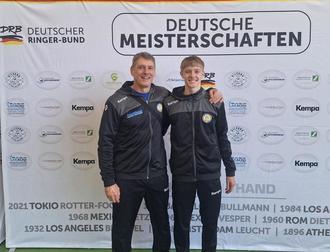 Bild: Carl Hocke mit Trainer und Vater Jörg, der ihn bei den Titelkämpfen in Reilingen auch betreute.
