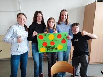 Ein weiterer Schwerpunkt lag auf dem Schutz der Bienen und der Förderung ihrer Lebensräume. Die Schülerinnen und Schüler setzten sich intensiv mit dem Thema Bienensterben und dessen Folgen auseinander. Als Teil ihres Projekts entwarfen sie informative Plakate über verschiedene Bienenarten und ihre Bedeutung für das Ökosystem. Diese Plakate werden nicht nur in der Schule, sondern auch in einem örtlichen Baumarkt ausgestellt, um möglichst viele Menschen zu erreichen und für das Thema zu sensibilisieren.