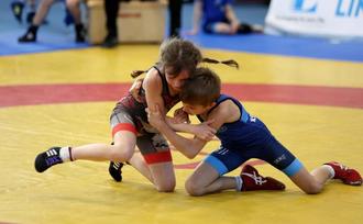 Sophia Török zeigte den Jungs, dass auch Mädchen ordentlich zupacken können, die kleine Ringerin vom KSV Pausa gewann am Ende Gold. Foto: S. Török