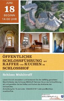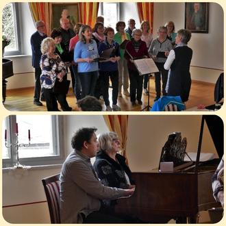 Wir freuten uns sehr, dass unserer Einladung zum gemeinsamen Fest des Schlossfördervereins und des Heimat- und Wandervereins viele Gäste in den wunderschön geschmückten Kospothsaal gefolgt sind. Die Idee dazu entstand in einer gemeinsamen Sitzung der Vorstände der beiden Vereine, war doch die Zusammenarbeit der beiden im Schloss ansässigen Vereine bisher hauptsächlich auf die Durchführung gemeinsamer Veranstaltungen wie z.B. des „Tages des offenen Denkmals“ und des „Adventszaubers“ beschränkt. Mit diesem gemeinsamen Fest rückten wir die Geselligkeit in den Mittelpunkt. Kulturell umrahmt wurde diese Veranstaltung von unserem Hobbychor unter Leitung von Annekathrin Weiß sowie am Flügel von Heidemarie Graap und Christian Rheber. Heidemarie Graap ist den Mühltroffern natürlich bekannt und führte im Saal schon sehr viele Jahre Konzerte ihrer Musikschüler auf. Einer dieser ehemaligen Schüler ist Christian Rheber, der mittlerweile in Mühltroff wohnt und eine sehr beeindruckende musikalische Laufbahn eingeschlagen hat. Christian Rheber unterhielt unsere Gäste als Solist mit zwei Stücken aus den Filmen „Die wunderbare Welt der Amelie“ sowie „Ziemlich beste Freunde“ und spielte gemeinsam mit Heidemarie Graap das vierhändige Stück „Sonatine d-Moll“. Am Ende des Nachmittags haben wir mit Christian Rheber Pläne geschmiedet und freuen uns auf weitere Zusammenarbeit mit ihm.