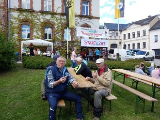 Bereits kurz nach 8:00 Uhr standen die ersten Wanderer am Start vor dem Rathaus in Pausa und warteten darauf, endlich loslaufen zu können.