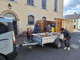 Bereits am Freitag vorher wurden das Papier und der Schrott von meist älteren Sammlern/innen, welche es nicht selbst anliefern können, abgeholt und in die Container verbracht und am Samstag hatten wir wieder alle Hände voll zu tun.