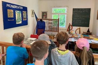 Am 1.6. sowie am 2.6. fand unser diesjähriger Schulausflug ins Deutsche Landwirtschaftsmuseum Schloss Blankenhain im Rahmen der Projektwoche „40 Jahre Schule Pausa“ statt. Die große Museumsanlage bietet verschiedene Ausstellungsangebote, die selbstständig von unseren Grundschülern erkundet werden konnten. Außerdem wurden den Kindern verschiedene handlungsorientierte Projekte geboten. Im Dorfschulmuseum wurden den Jungen und Mädchen aus der 4b und der 3b gezeigt, wie der Unterricht früher abgehalten wurde. Sie schrieben mit Griffel auf der Schiefertafel und mit Glasfedern. Die Klasse 4a unternahm eine Exkursion rund um den Schlossteich. Ihr Vorwissen aus dem Sachunterricht half ihnen dabei, die Pflanzen und Tiere vor Ort bestimmen zu können. Die Kinder der Klasse 2a und 1a/1b gewannen einen Einblick in das Leben eines Müllers und lernten das Bäckerhandwerk näher kennen. Sie backten frisches Brot, das sie sich anschließend genüsslich schmecken ließen. Die Lebenswelt der Kinder auf dem Lande um 1930 lernten die Schüler der 2b kennen. Zudem erhielten sie einen Einblick in die Herstellung von Holzspielzeug. Die Klasse 3a unternahm eine Führung durch die Schmiede, die Stellmacherei und andere historische Handwerksausstellungen. Zudem probierten sie das Filzen als altes Handwerk aus. Überdies bot das Gelände viel Platz zum Spielen. Es war ein gelungener Ausflug, bei dem alle viel Spaß hatten.